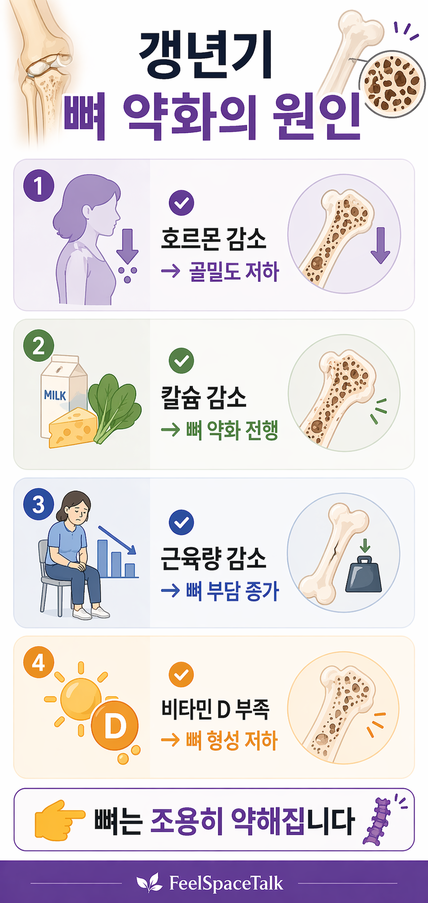 갱년기 호르몬 변화는 뼈에도 영향을 미치기 때문입니다.