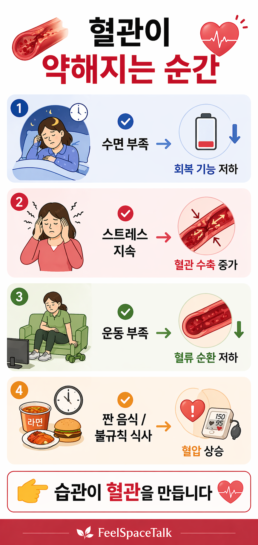 👉 생활의 균형이 무너지면 혈관 건강도 함께 흔들립니다.