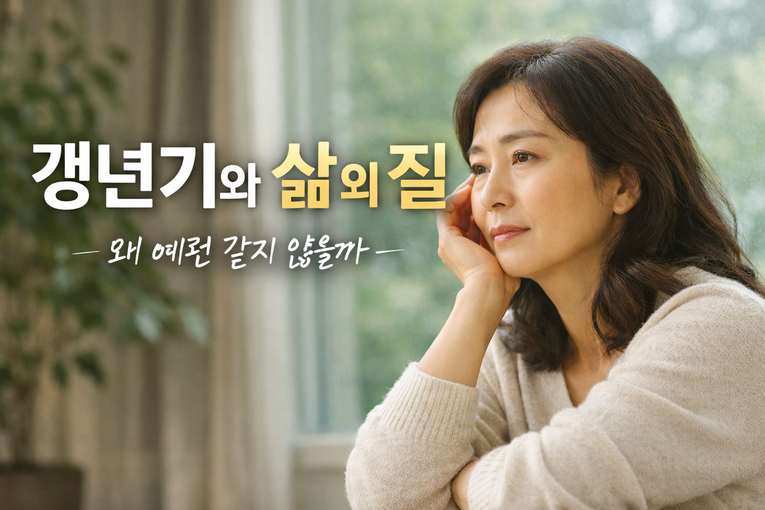 이번 글에서는 갱년기와 삶의 질이 어떻게 연결되는지, 그리고 이 시기를 어떻게 지나가면 좋은지 조금 더 깊이 있게 살펴보겠습니다.