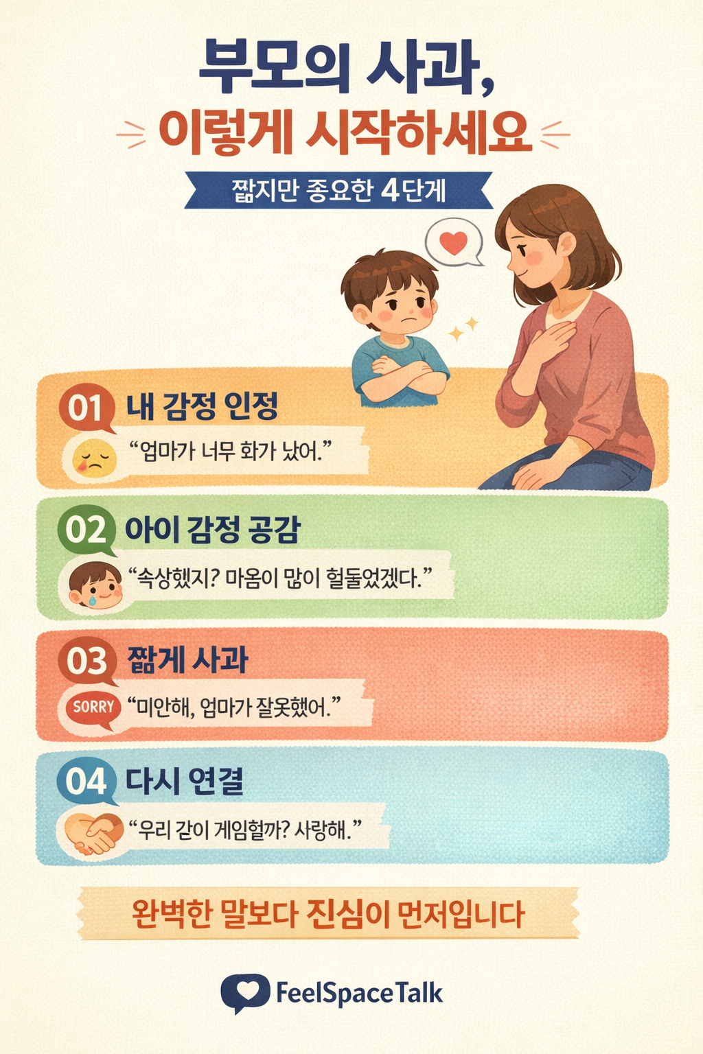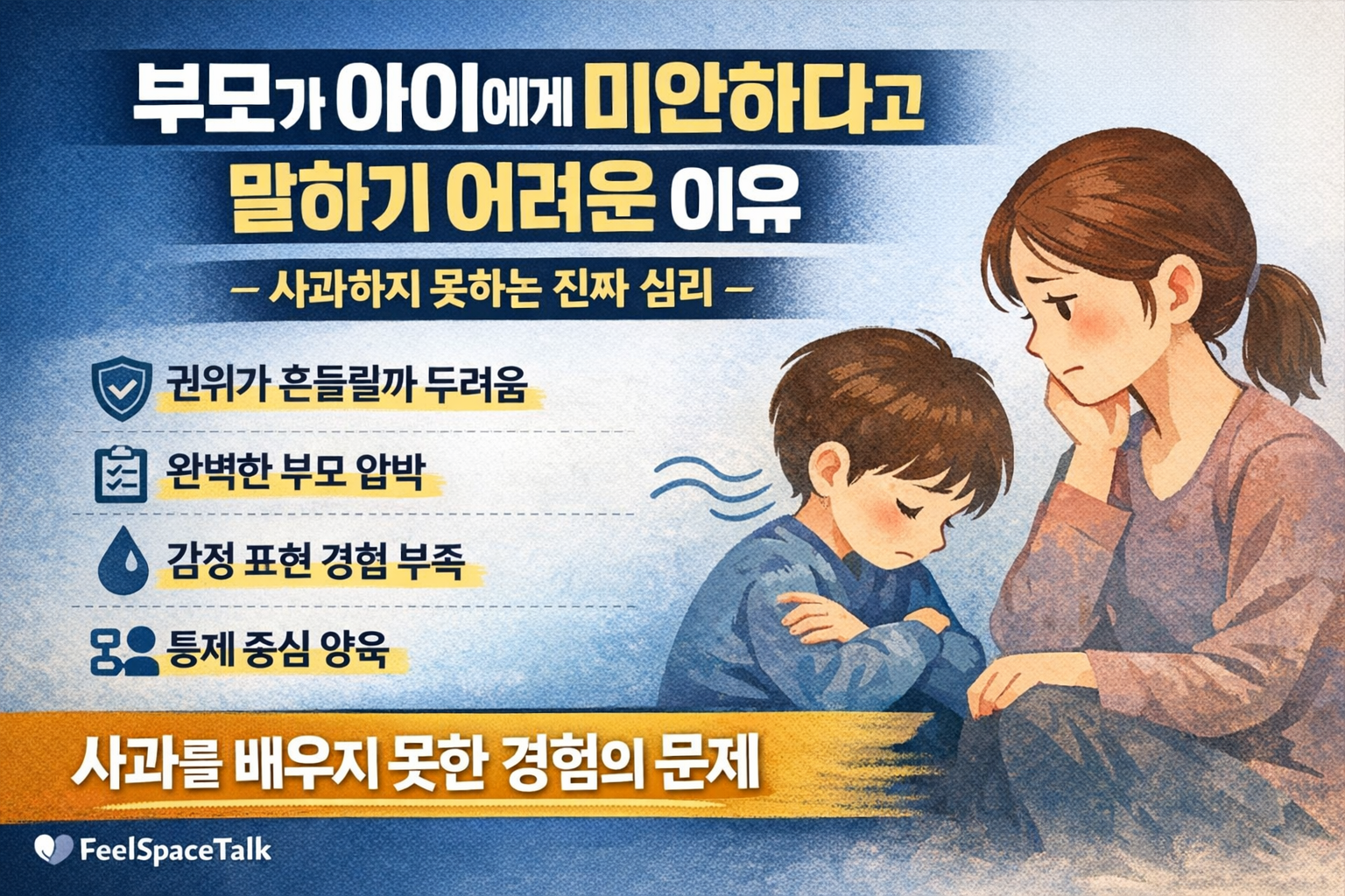 부모가 아이에게 사과하지 못하는 심리적 이유를 감정과 관계의 관점에서 풀어낸 콘텐츠