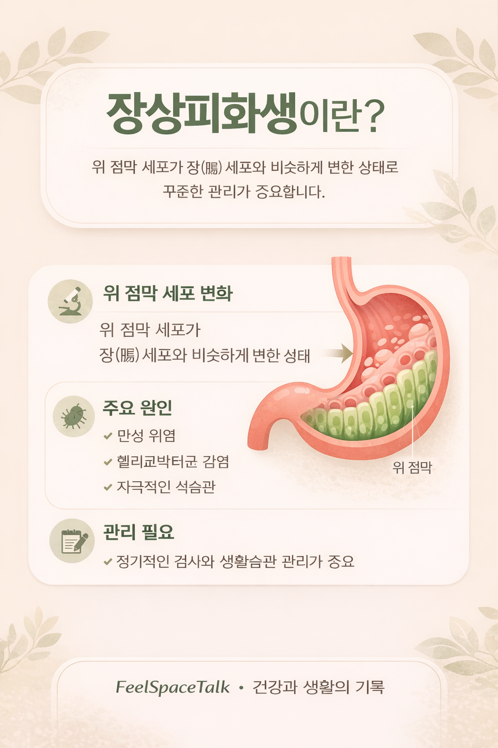 다음 글에서는 장상피화생의 주요 원인과 위 점막 변화가 생기는 이유를 정리해 보겠습니다.