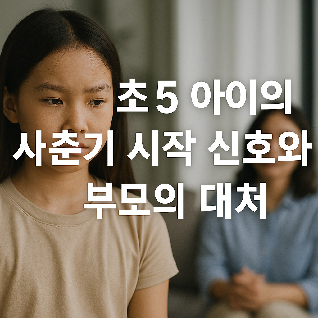 초5 아이의 사춘기 시작 신호는 불안의 원인이 아니라 성장의 신호등입니다. 부모가 이 신호를 두려움이 아닌 자연스러운 과정으로 받아들이고, 존중과 공감으로 대응한다면, 사춘기는 갈등의 시기가 아니라 관계를 한 단계 성숙시키는 기회가 될 수 있습니다.