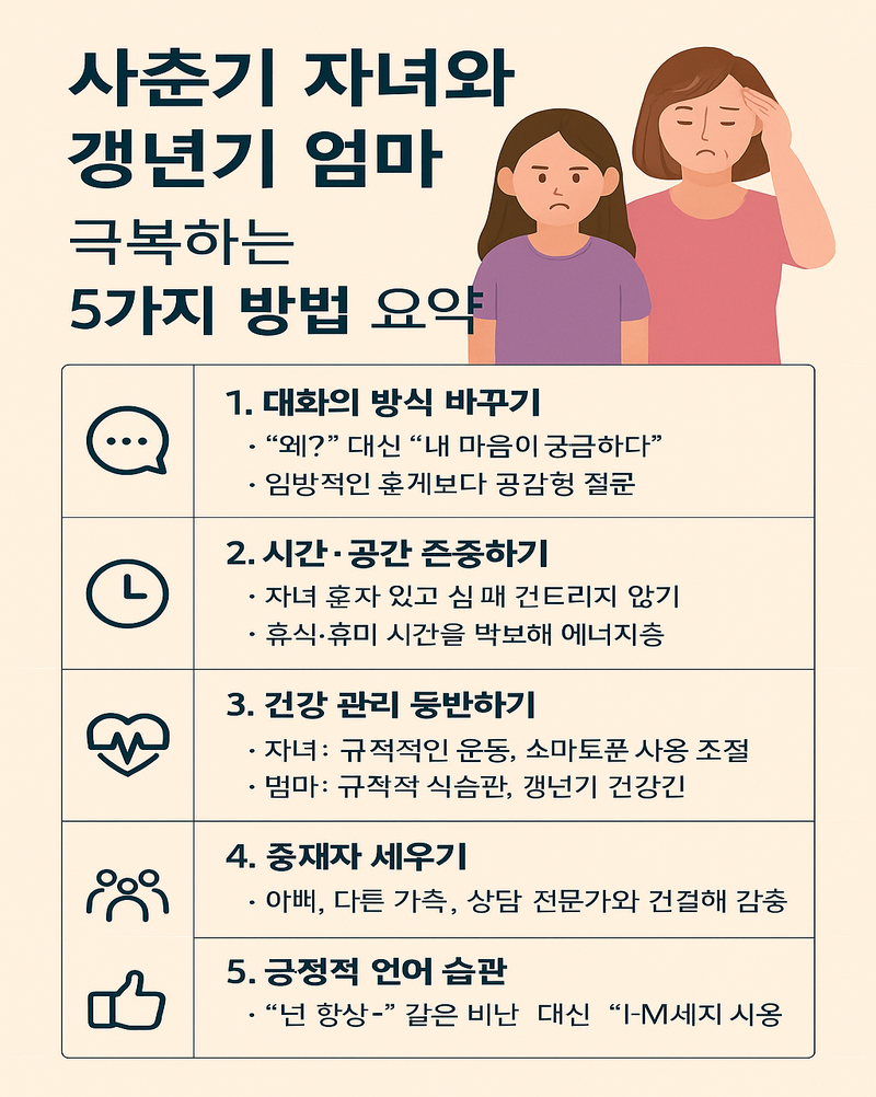 "사춘기와 갱년기, 갈등을 줄이는 5가지 핵심 솔루션"