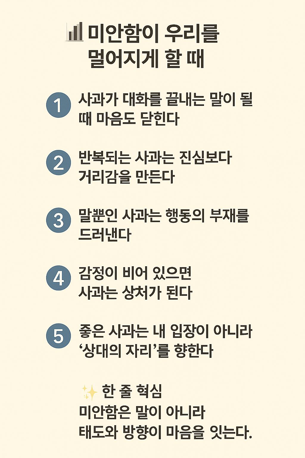 이 순간 ‘사과’는 진심의 증거가 아니라 마음이 우리 사이에서 빠져나간 신호가 됩니다.