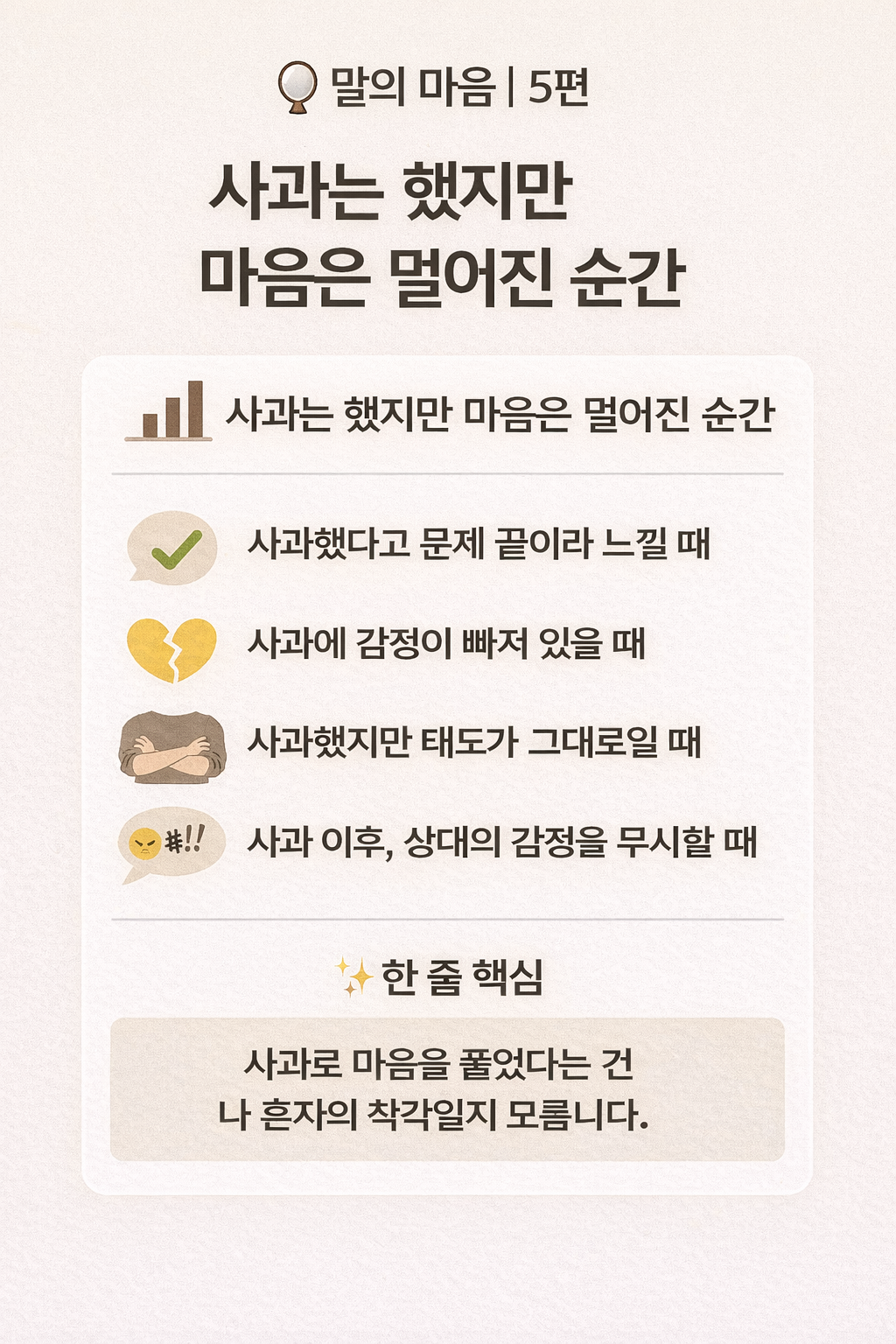 | 🪞 말의 마음 | 미안하다 사과는 했지만 마음은 멀어진 순간 (0) | 2025.12.19 |